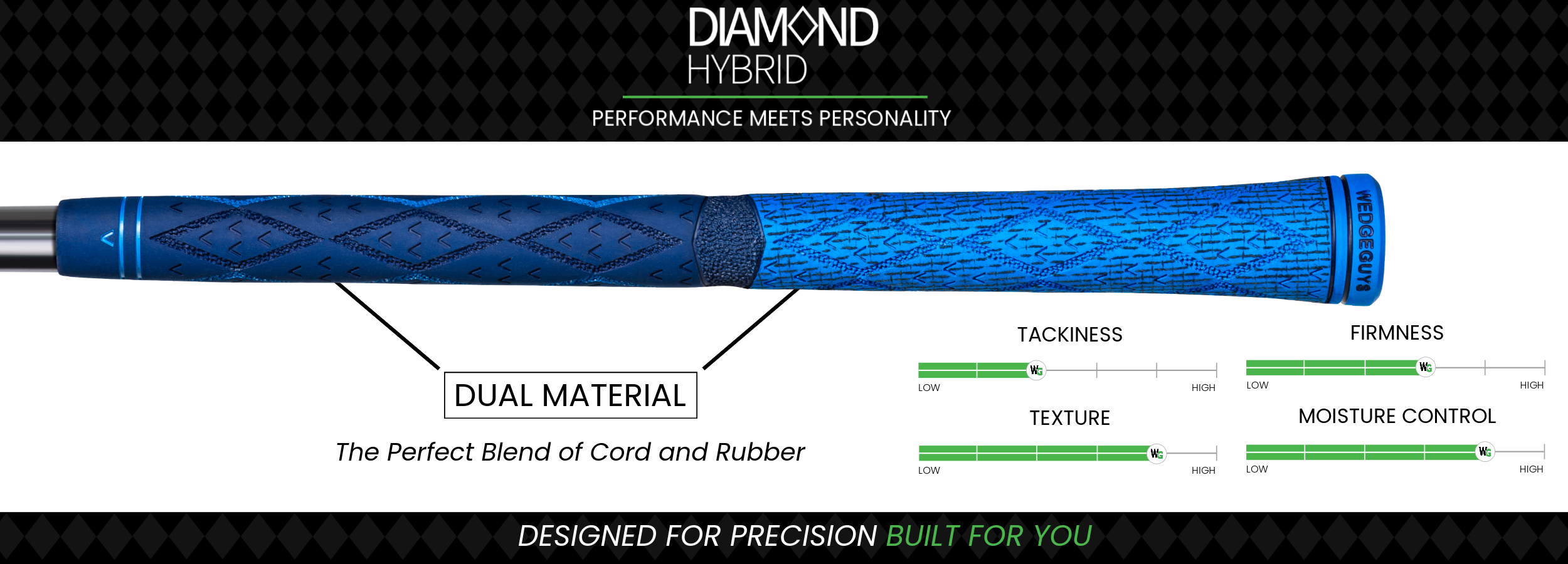 Diamond Hybrid grips are a solid choice for golfers who want a balance between comfort, performance, durability, and versatility. Their innovative design helps provide better control, all-weather performance, and comfort throughout the round.